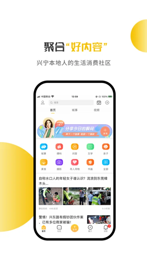 【兴宁本地生活消费社交应用】兴宁圈是兴宁本地生活信息分享社区。为市民的吃喝玩乐购搭建信息分享的平台,努力为高品质生活服务和导航,引领你我的时尚和健康生活。兴宁圈的愿望,就是集合众多的“分享家”们,一起把兴宁每分每秒中发生的动态进行汇聚和分享;