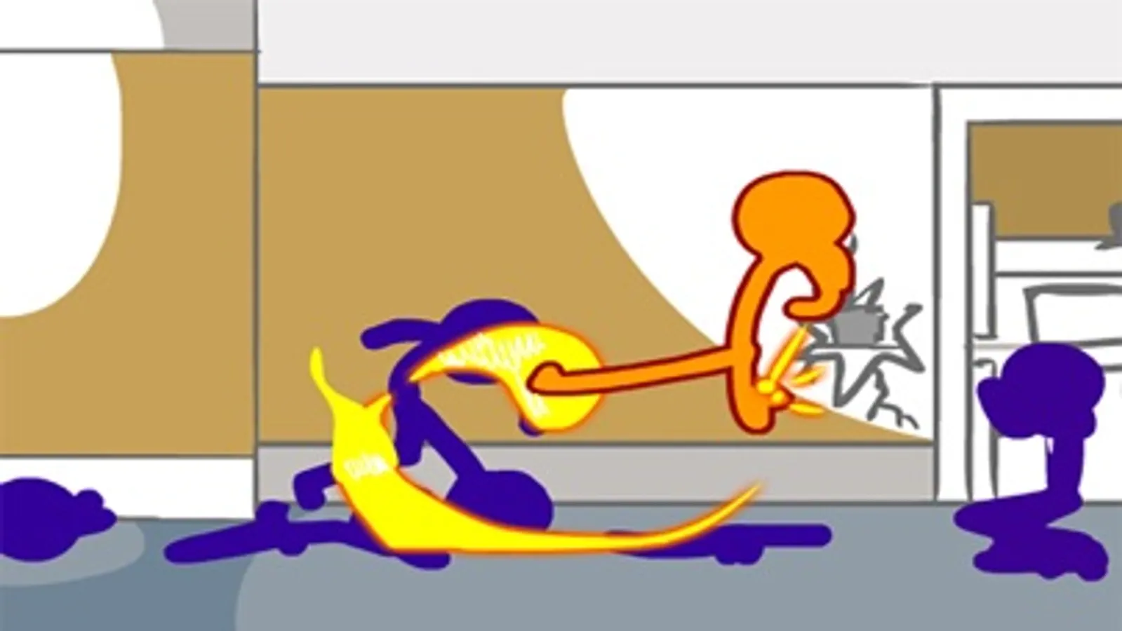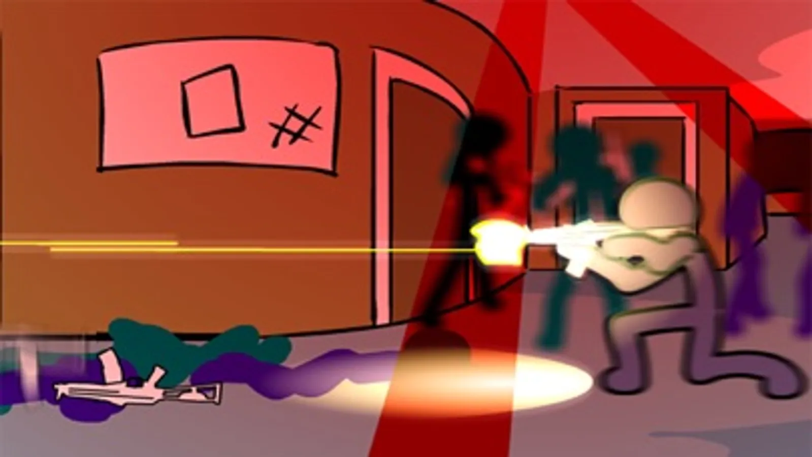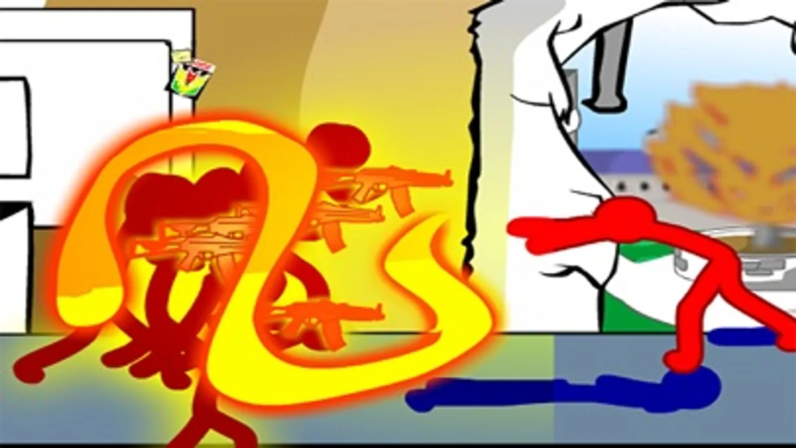 A group of blue stickmans have invaded your city,now your headquarters building is under attack.