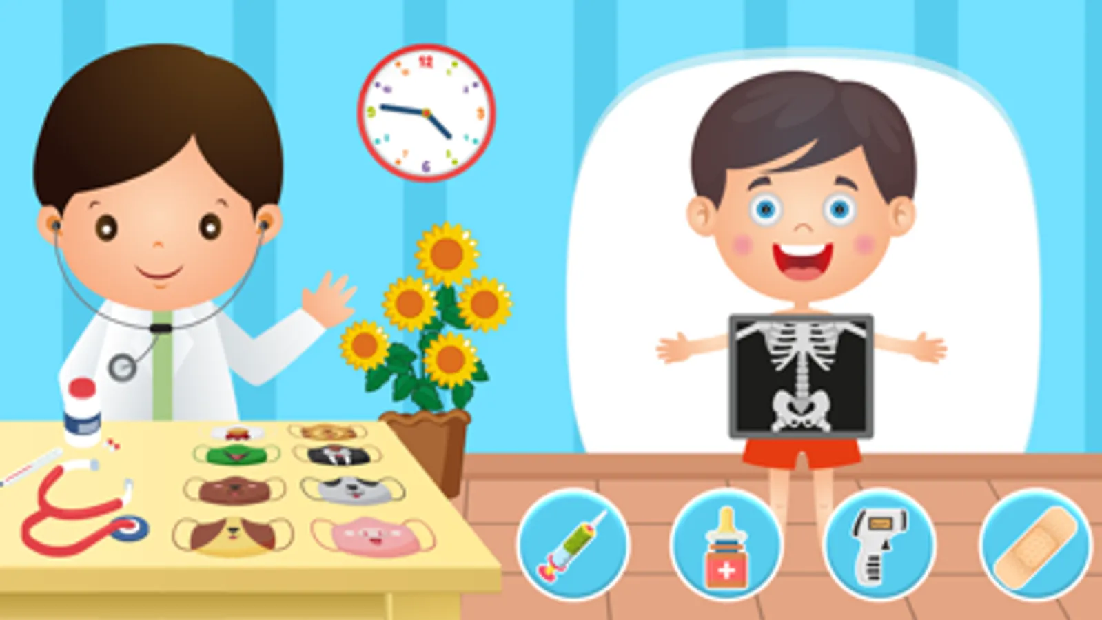 Adults also will enjoy the activities of “Kids Learn Professions”: helping the farmer, fishing game, firefighting, cooking, making pizza, making ice cream, building a railway, coloring, and the memory cards section.