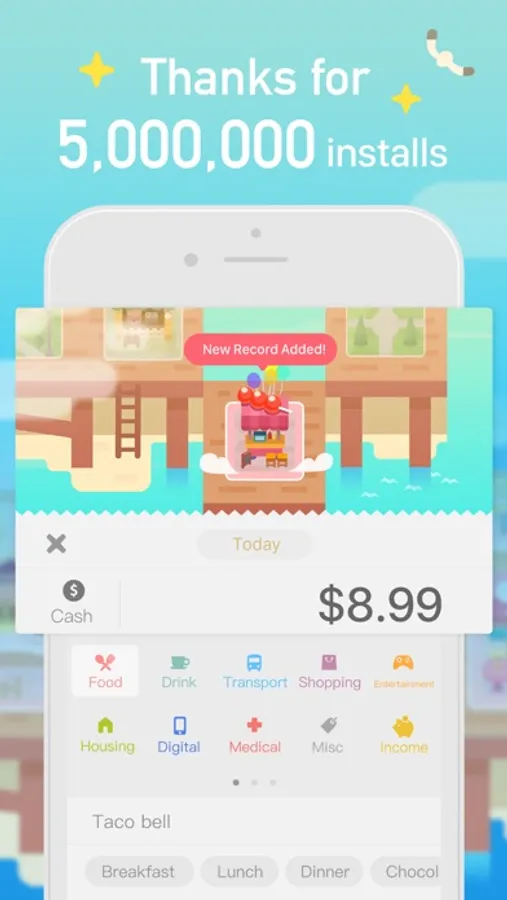 - Gamification gets you hooked on recording expenses! Build good habits while watching your city develop and grow.
