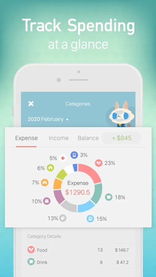 - Easy to use interface let you track your spending and categorize transactions in simple taps.