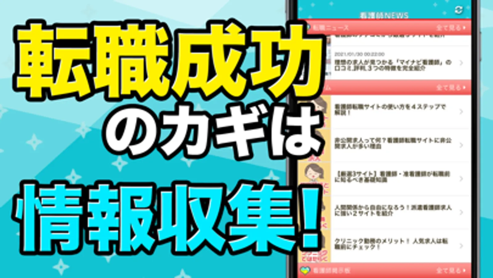 本アプリでは、転職・スキルアップしたい看護師の方向けの情報も集めて配信しています。