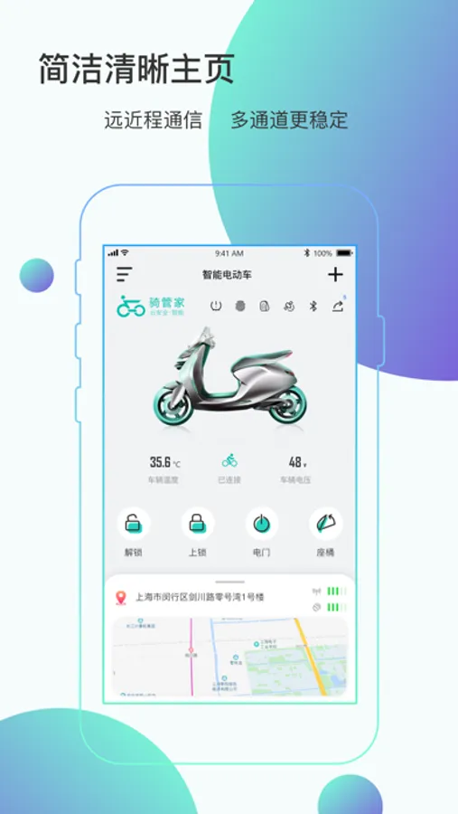 骑管家APP是一款提供电动车智能蓝牙防盗报警的APP,配合骑管家开发的智能蓝牙报警器,可通过APP使用手机操控车辆,另外可以通过添加匹配智能蓝牙外设增加不同功能,使得电动车更加智能化。APP兼容所有的含有蓝牙4.0及以上的手机。为广大电动车用户提供安全保障和便捷服务。接入百度定位功能实时获取用户地理信息,进行路线导航和路况查询规划功能.准确获取到用户地理位置的天气信息,提醒用户出行注意.