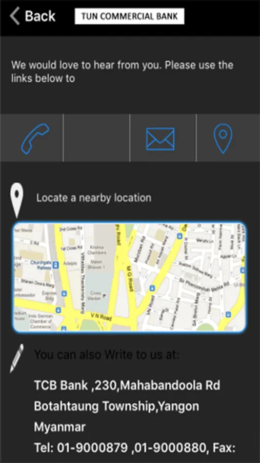 This Mobile banking application of Tun Commercial Bank can be used to do most of banking transactions such as Fund transfer, Account statement enquiry, Block/Unblock of cheques etc..directly from mobile devices any time