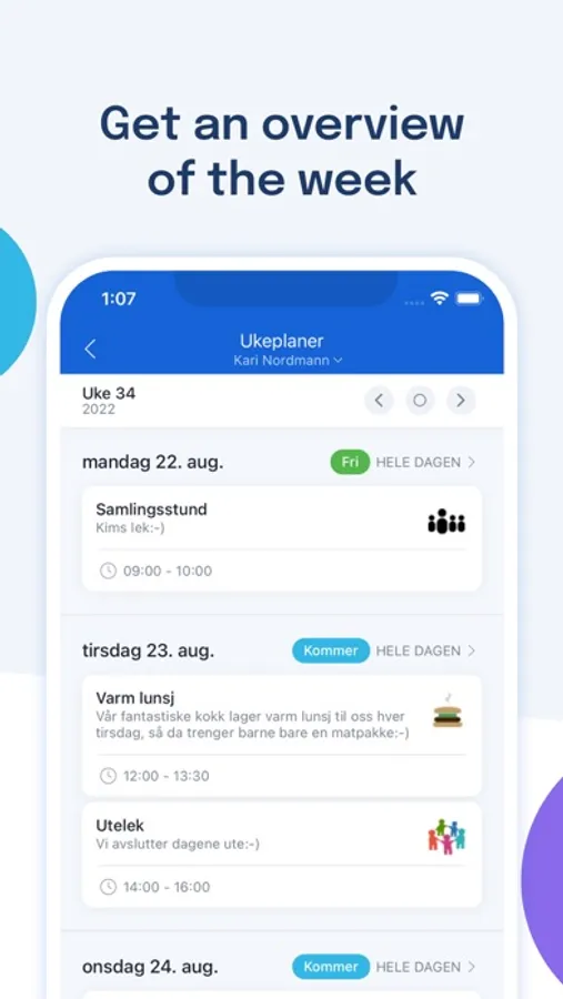 All information and functionality from the MyKid portal is available in the app and you receive a notification on your mobile every time important information is posted.