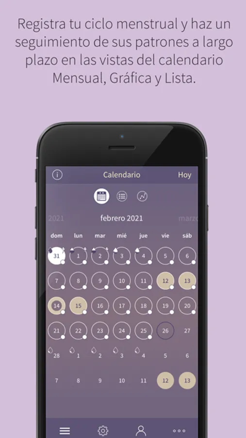 - Permite registrar tus patrones menstruales fácilmente