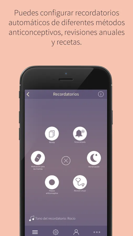 - Configurar recordatorios personalizados, del ciclo menstrual, de prescripciones, de tu revisión anual, y de anticonceptivos u otros medicamentos