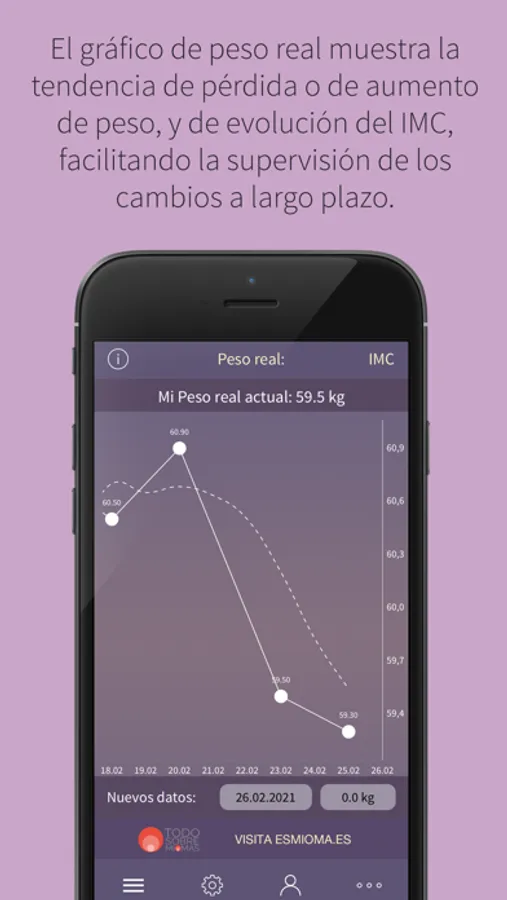 - Comprobar tu índice IMC, que se basa en el peso y la estatura que hayas introducido