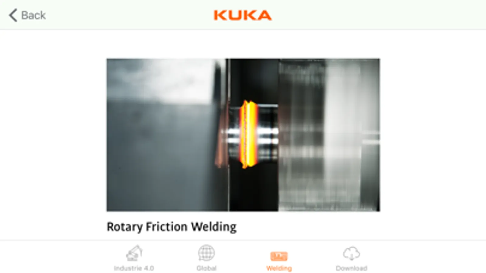 Take an interactive look at the latest generation of friction welding machines with the KUKA Genius app. Enter a virtual world and view the KUKA Genius from a 360 degree perspective. The KUKA Genius can be operated virtually at the touch of a finger. The zoom function gives you a closer look at the KUKA Genius. And this is how it works: