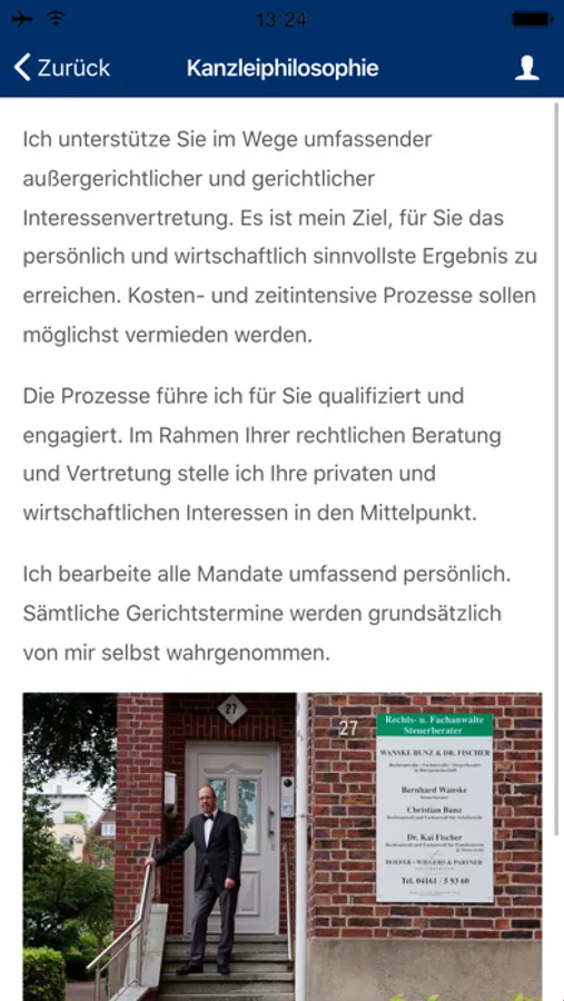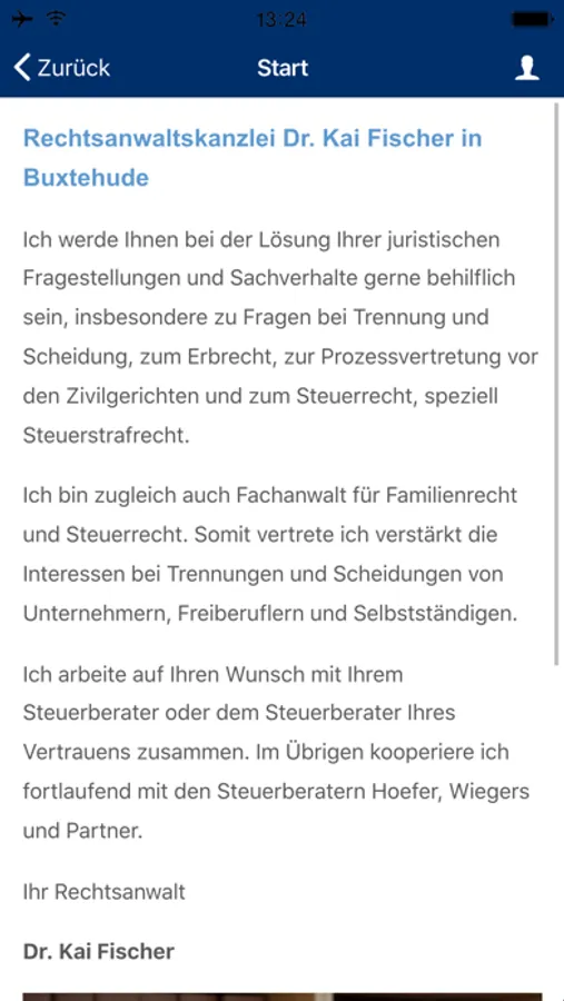 Herzlich Willkommen zur offiziellen App von Rechtsanwalt Dr. Kai Fischer in Buxtehude! Hier erfahren Sie alles über meine Arbeitsbereiche sowie Kontaktmöglichkeiten.