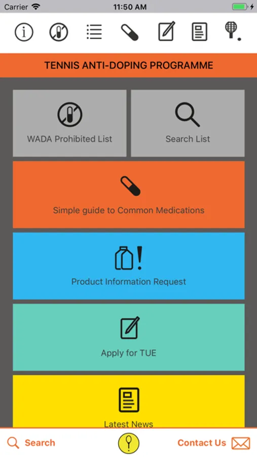 The Tennis Anti-Doping Programme app contains the following information and resources for players:
