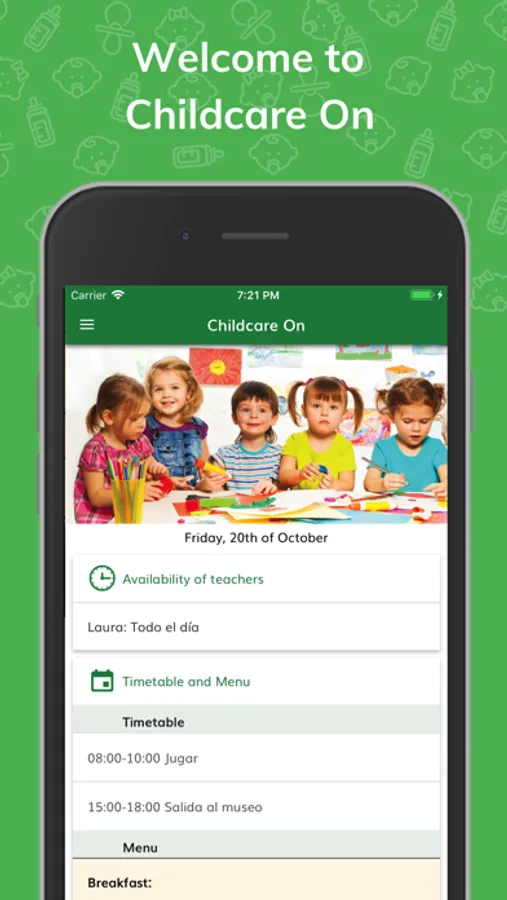 Childcare On complies with all safety parameters, use it with complete peace of mind, whether you are School or family. Only those invited by the person in charge can access the App.