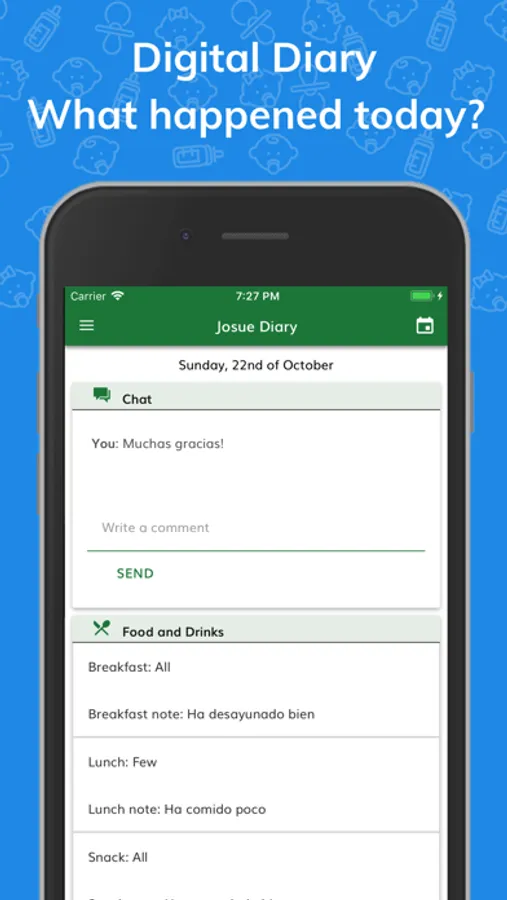 - Student's personal agenda: Set of cards to be able to report information in real time on the day-to-day life of each child. It does not include the School-Family communication chat, or photos.