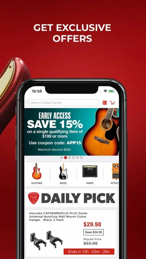 Welcome to the Guitar Center app. You can shop on the go, get personalized notifications, explore product reviews while in the store and much more. All the gear you can ever imagine is right in the palm of your hand. For access to your favorite brands and gear, anytime and anywhere, download our free app and find your sound.