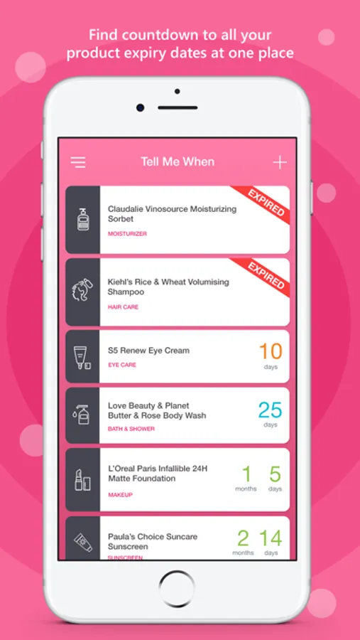 TELL ME WHEN makes it extremely simple to keep you updated and well-prepared for all your beauty products that need to be replaced.