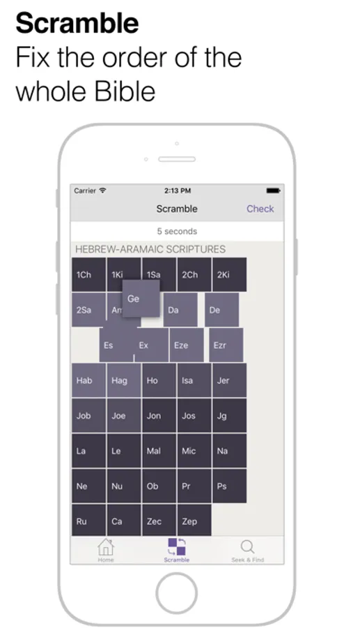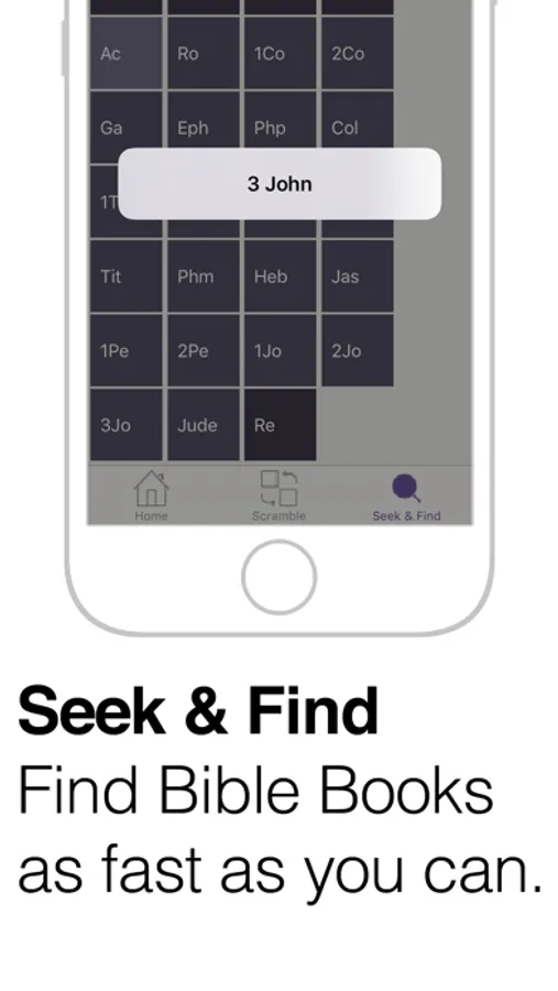 • Tap correctly on the Bible book displayed, and then another book pops up for you to find.