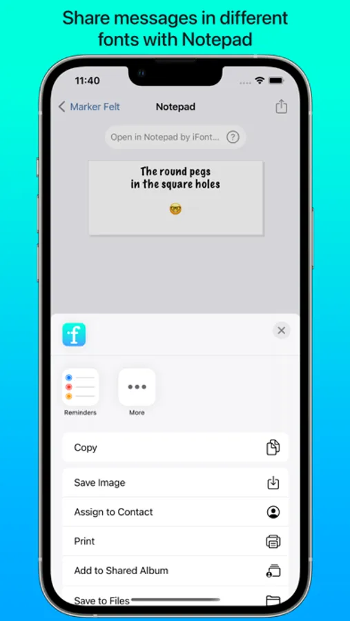 The Notepad you find under each font lets you test it out and type a message, and then export it as an image to send in apps such as Messages. Add some character to your texts by using a font which stands out from the crowd!