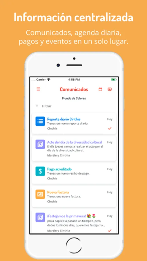 Infórmate sobre lo que aprende tu hij@ en el kinder. Recibe las novedades e imágenes de su crecimiento directamente en tu celular.