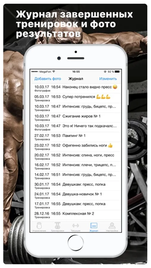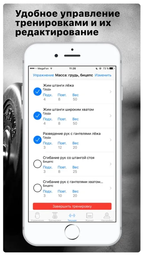 • синхронизация журнала и тренировок через iCloud между всеми устройствами