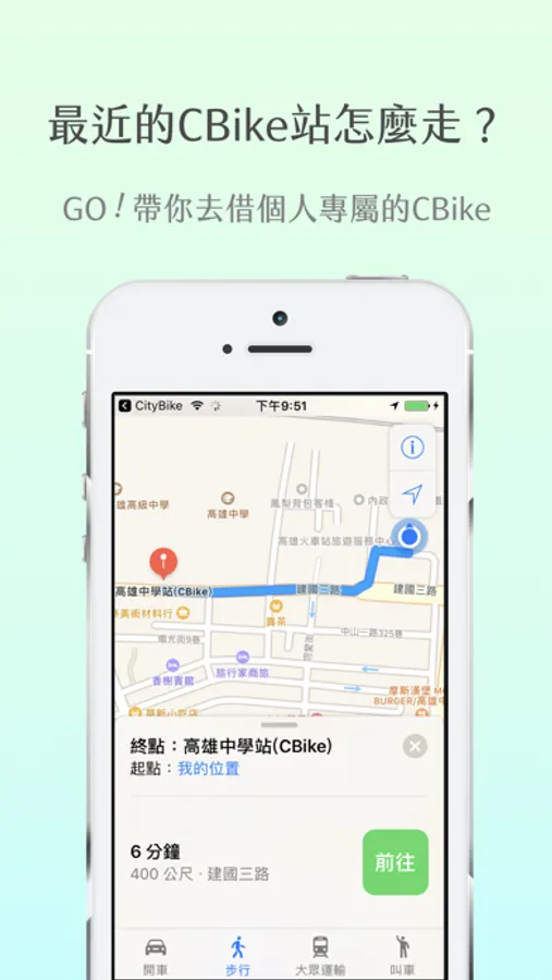2.一鍵導航 - 帶你走到您指定的CBike站點位置
