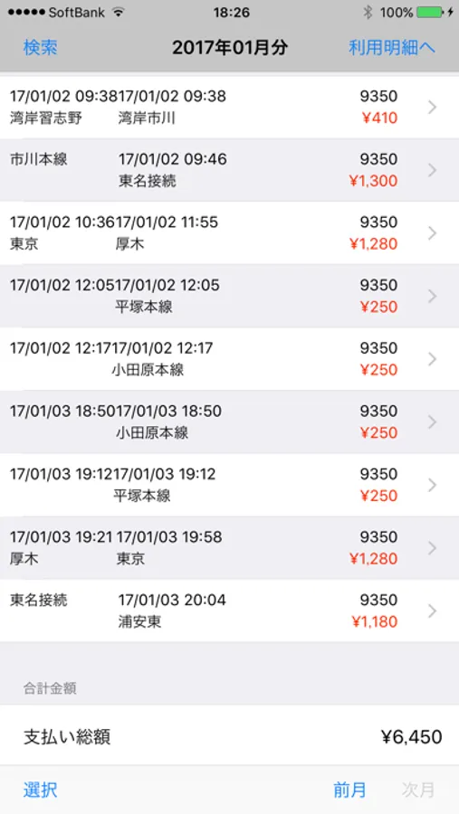 一ヶ月10件以上の履歴を表示するには、検索画面から検索してください
