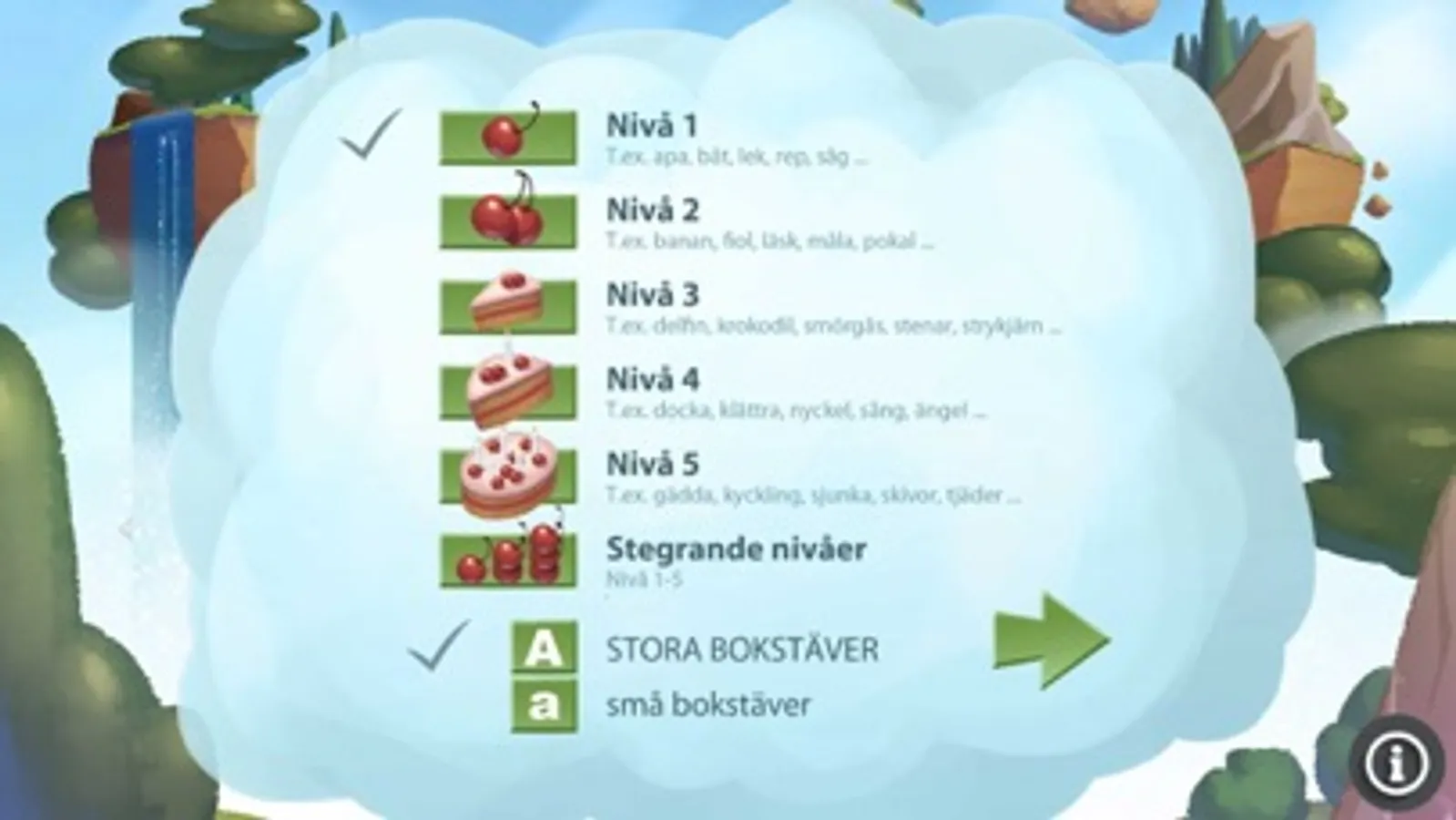 - Ljuda bokstäver och bilda ord i 5 olika nivåer