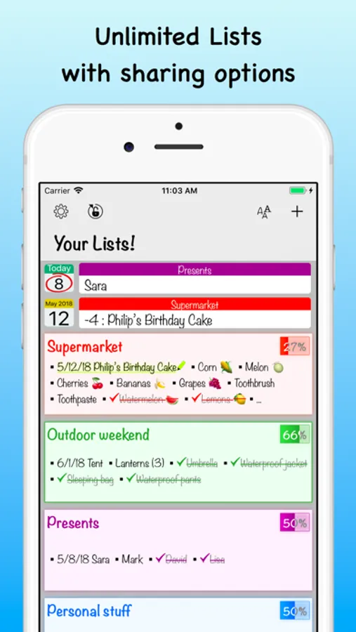 Fast and easy way to create FREE unlimited lists to share with your friends and family!