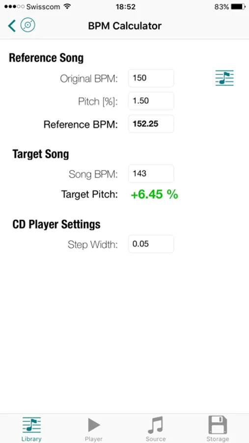 * Calculation of the pitch for the selected song based on the BPM from another song and its currently set pitch