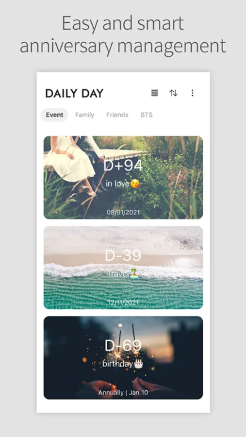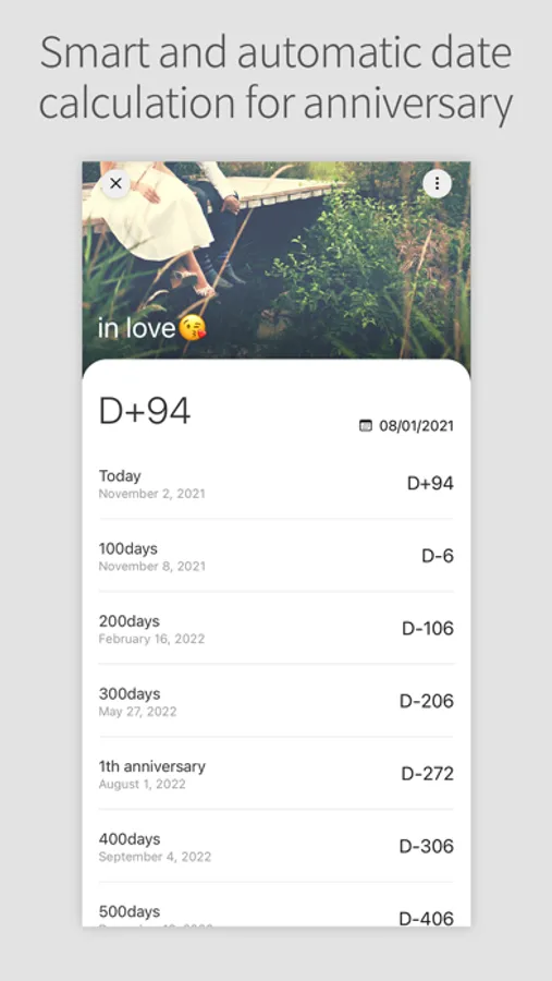 The 100th day, 200th day… and 1st anniversary, 2nd anniversary... automatic calculation for anniversaries