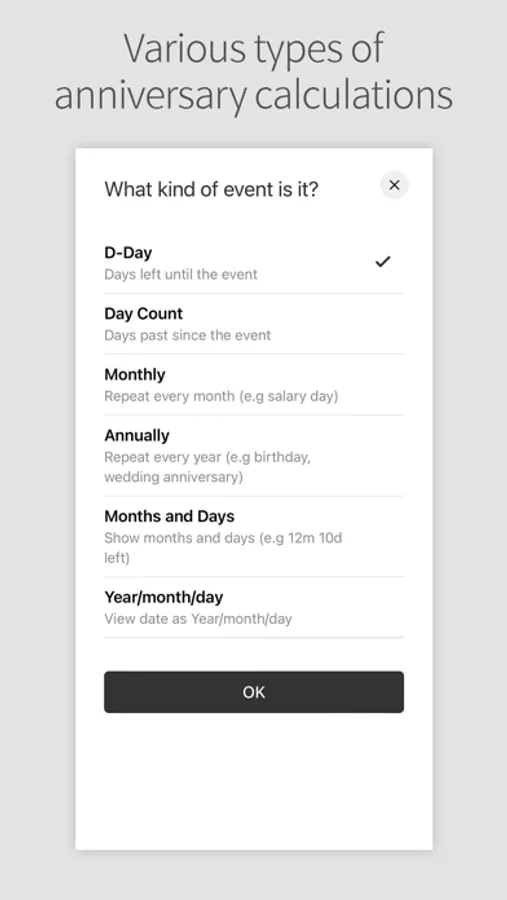 D-Day, Anniversary, Monthly, Annually, Months and Days