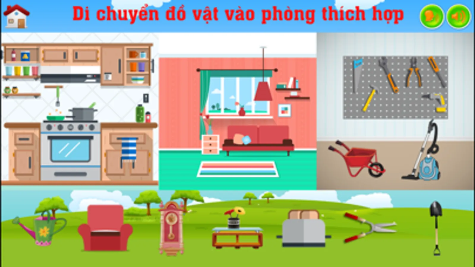 + Trò chơi phân biệt đồ dùng theo từng phòng khác nhau trong nhà.