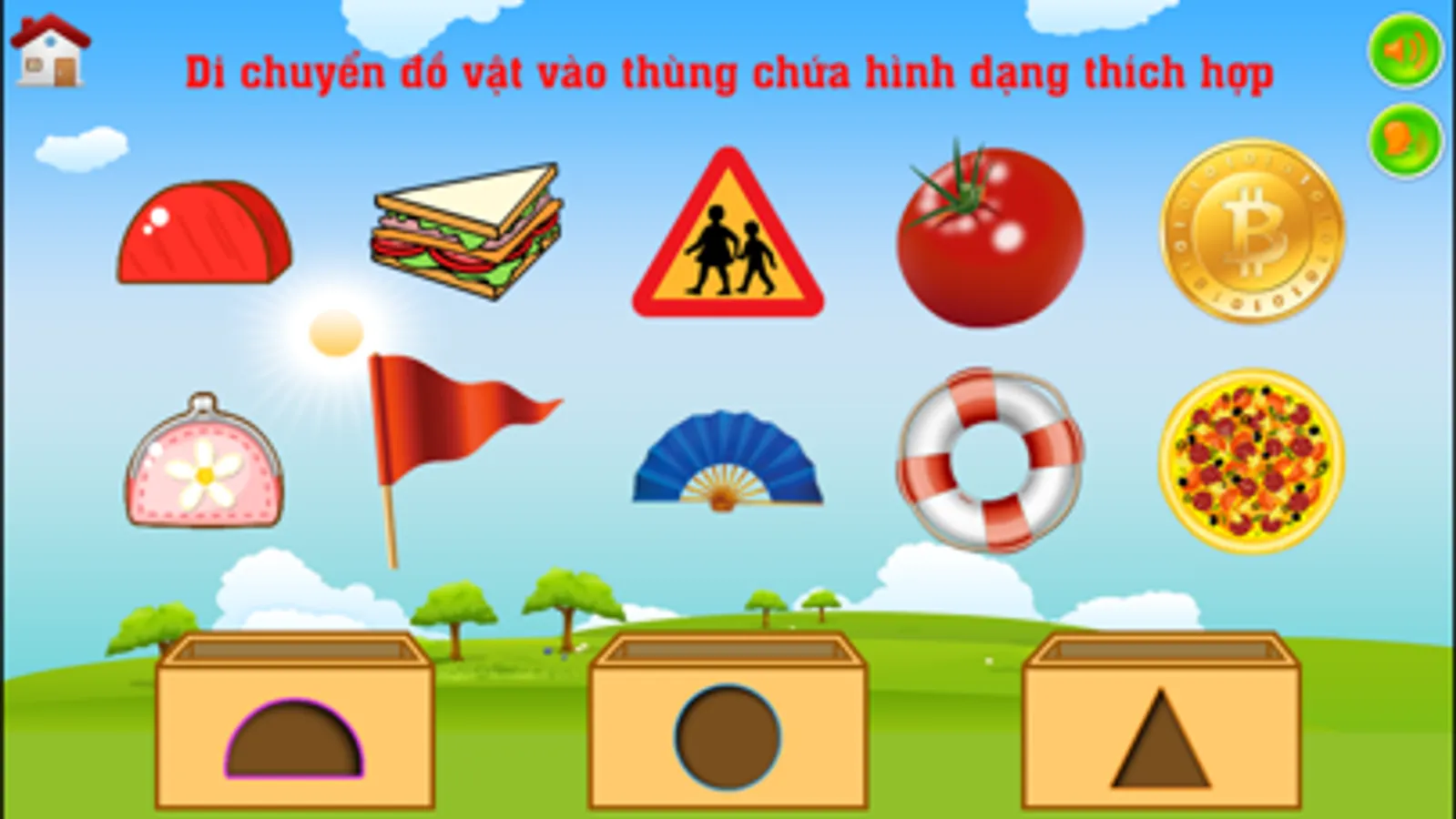 + Trò chơi phân biệt hình dạng từng món đồ.