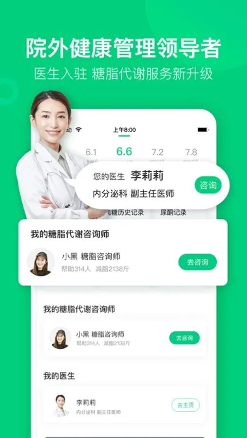 -医生咨询:引入专业的医生团队及个人医生入驻变啦APP,对血糖、减脂、抗衰做专业的咨询指导;