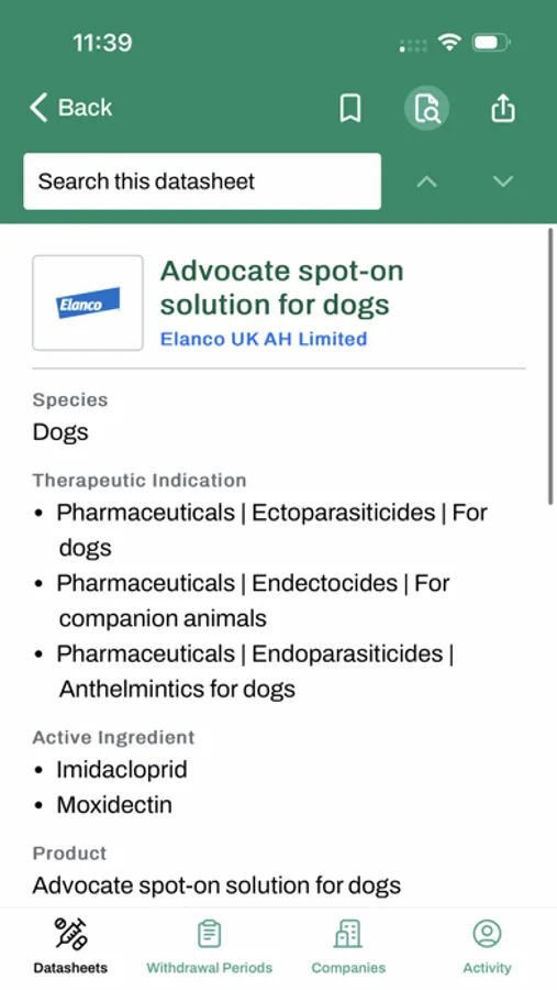 Easily scan datamatrix barcodes on veterinary medicinal product packaging to take you straight to important product information.