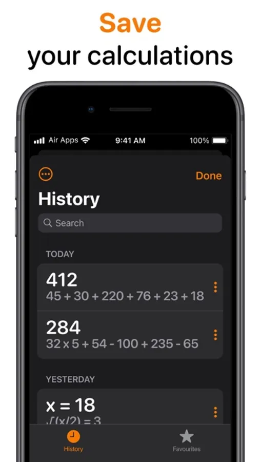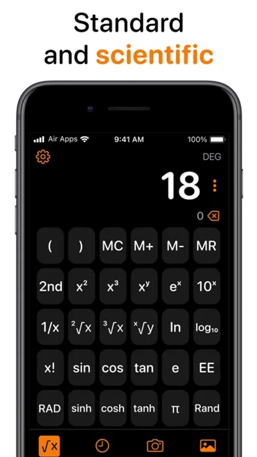 Access scientific calculator, currency converter, and unit converter features.