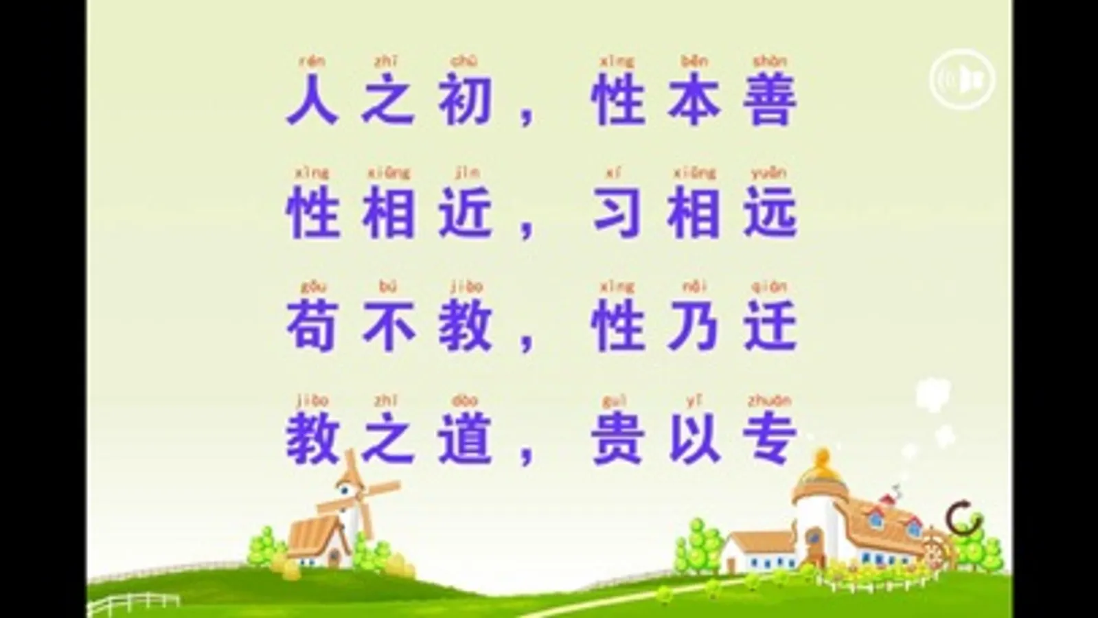 易解:人初生之时,本性都是善良的。善良的本性彼此都很接近,后来因为生活和学习环境的不同,差异越来越大。受良好的教育,善良的本性就会随环境的影响而改变,至于教育方法,应注重在使孩子专心,有定力。课业的选择,要以专精为主,不要希求广博。