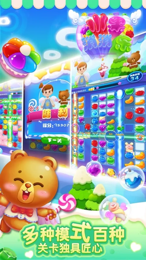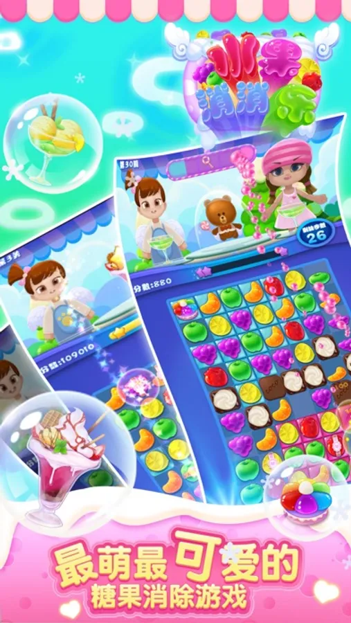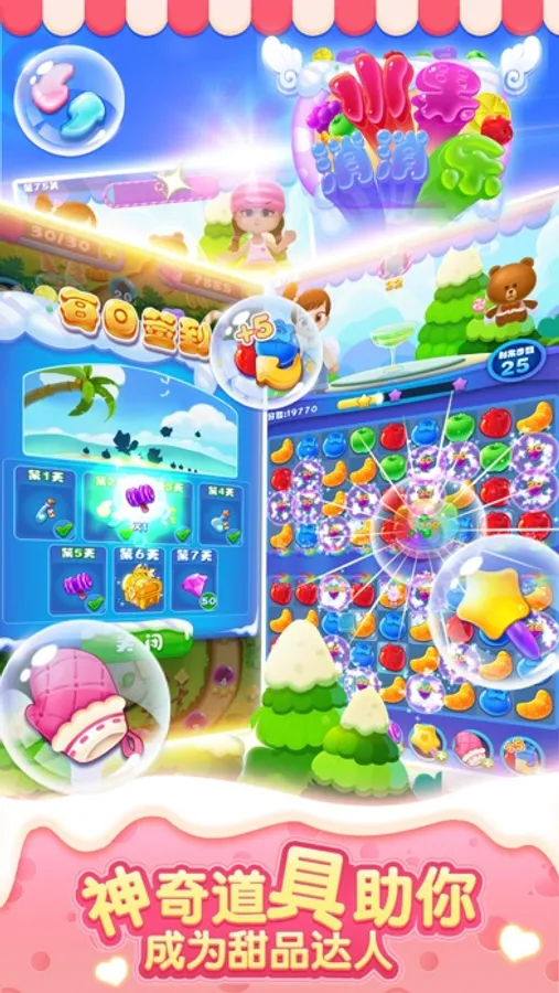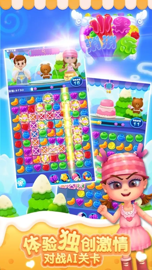 史上最萌最可爱的消除游戏!梦幻甜美的糖果风格、丰富趣味的音效、爽快流畅的手感,带给您最高品质的休闲互动体验!