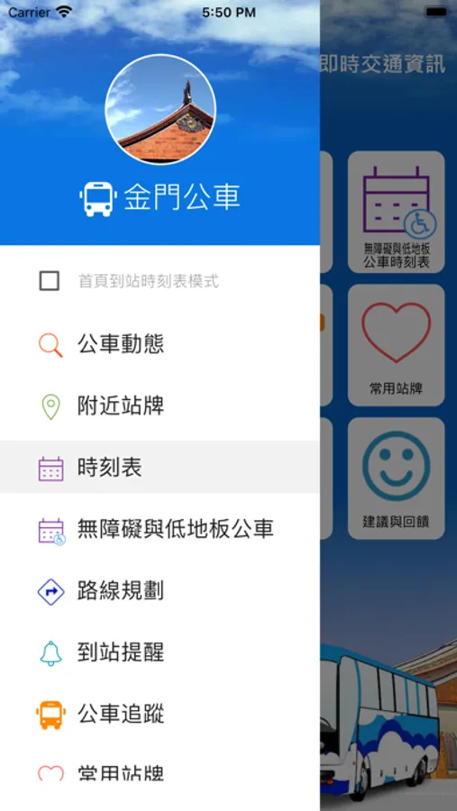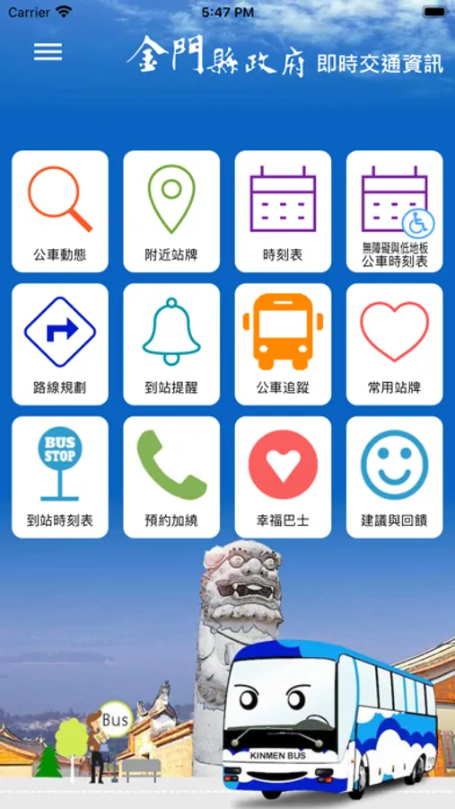1. 提供金門地區即時動態資訊,快速查詢預估到站時間。