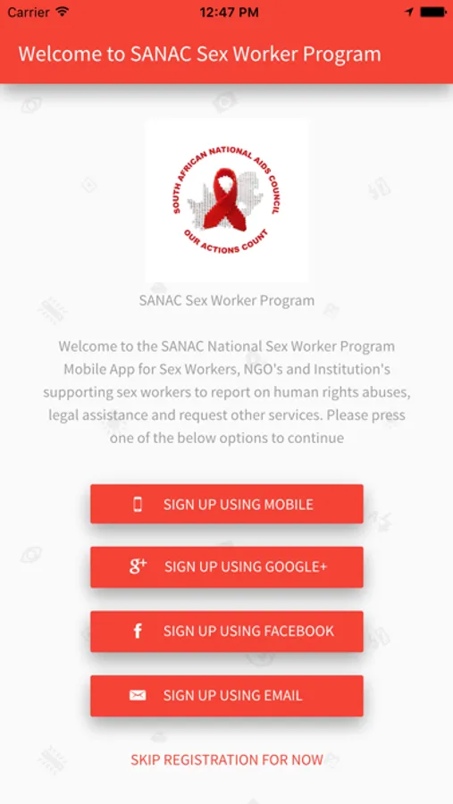 SANAC National Sex Worker Program Mobile App for Sex Workers, NGO's and Institution's supporting sex workers to report on human rights abuses, legal assistance and request other services
