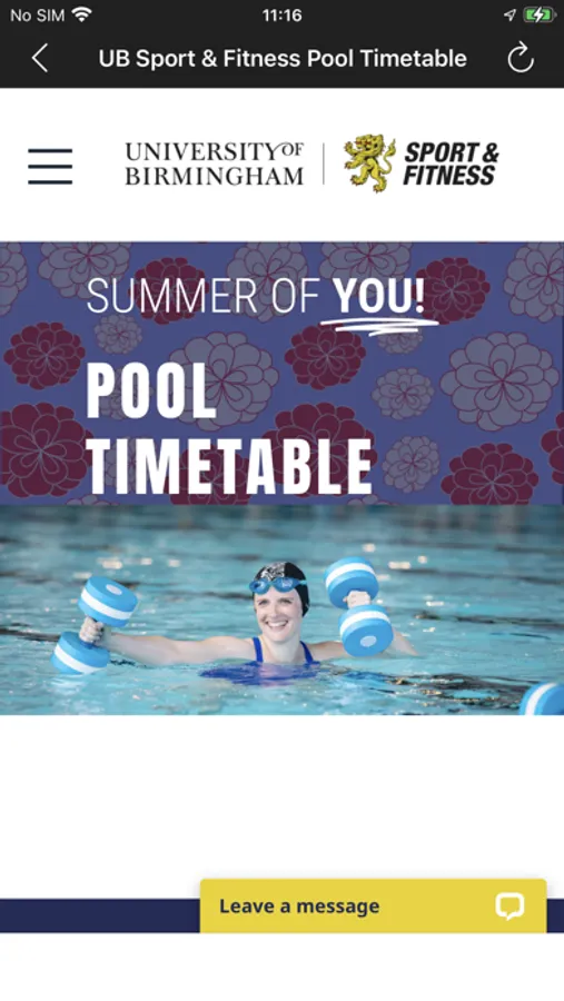 The free University of Birmingham Sport & Fitness app allows you to book courts and activities, check our class and swim timetable as well as make bookings, and find out more about Sport & Fitness and University of Birmingham Sport.