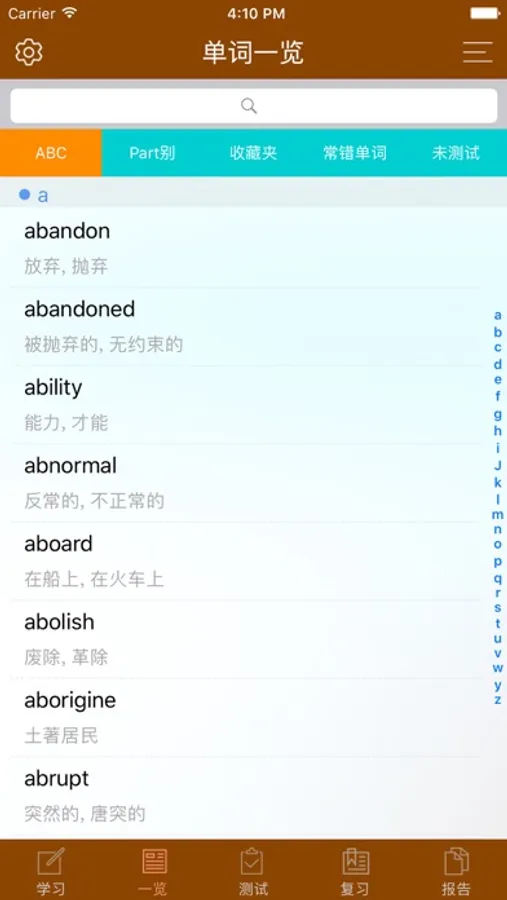 ・收藏单词:可根据收藏单词的等级自由组合测试范围