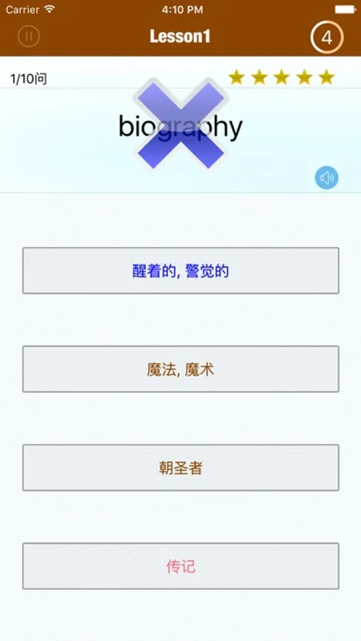 挑战模式,只听单词发音,从8个选项中快速回答,非常刺激,让你的心跳瞬间加速!