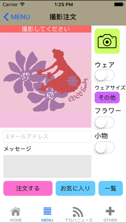 撮影注文で、イベントなどで気になったアイテムを写真で撮影して簡単に注文ができます。