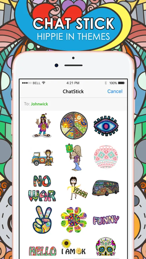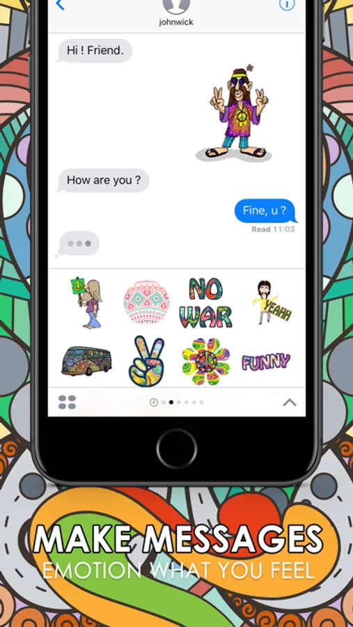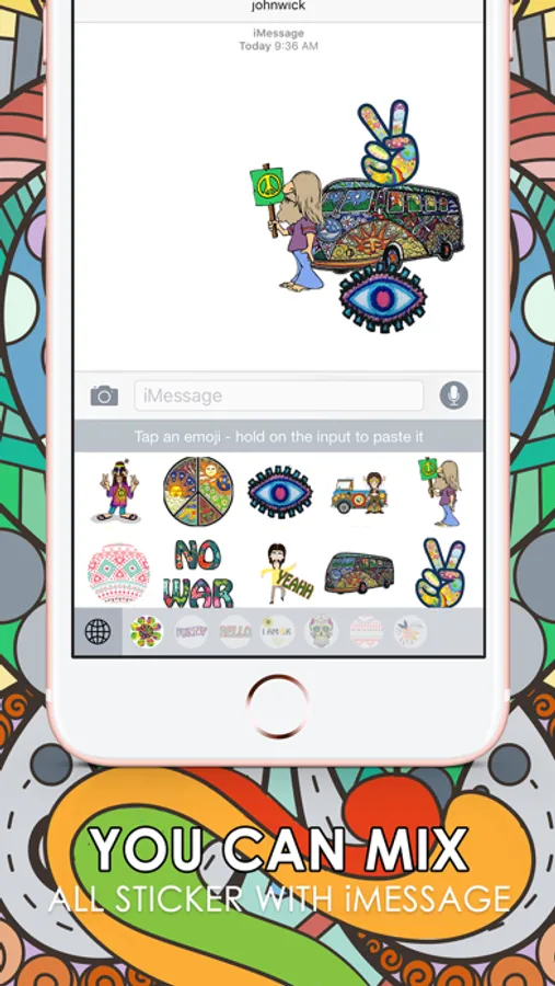 Purchase Hippie Emojis and get over 50+ Hippie emojis to text friends. Hippie Emojis is two emoji apps in one - a keyboard app for quick access when texting and a full app for sharing to social networks. Keep the excitement by adding digital stickers to all of your messages!