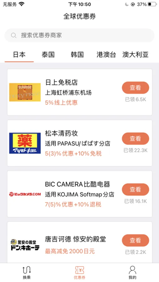 去日本怎能少得了买买买,日本换乘APP为您提供覆盖全日本上千家商城的优惠券,机场免税店、市区免税店、奥特莱斯,人气商场、人气购物中心、药妆店、电器城、美食店等等,拿上优惠券,开启你的日本买买买之旅吧!