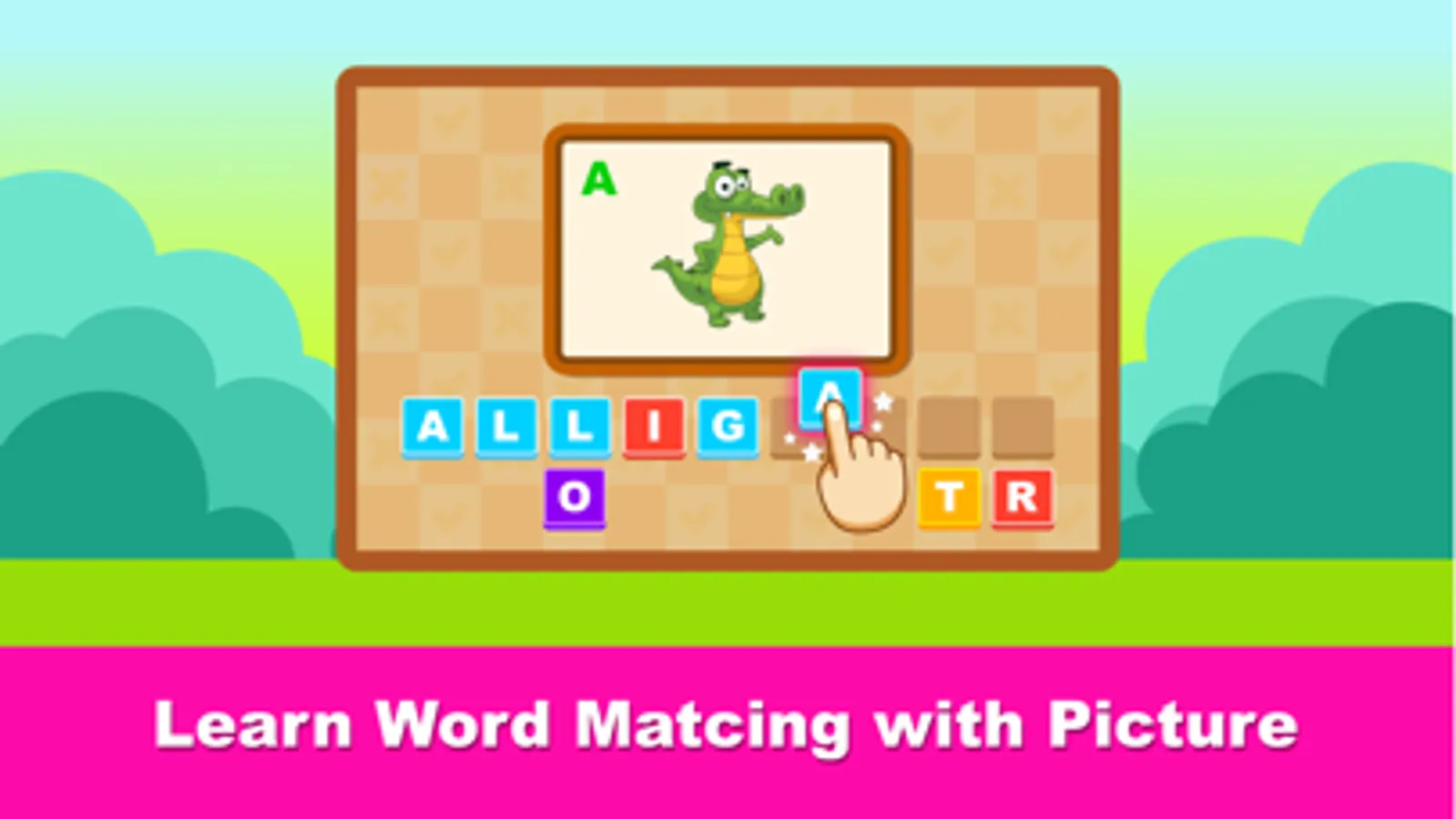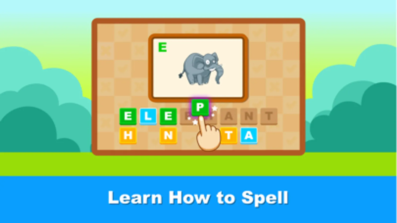 This game teaches children basic words in English, by practicing spelling the first words they have already learned. The game also helps them improve their English language skills.