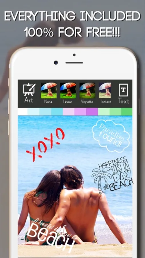 Everything in the app is available for FREE! Just select a photo from your gallery, or take a new one with your camera. Add a couple stickers and/or text and your ready for sharing!