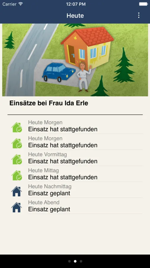 Die kleine App auf dem iPhone informiert und beruhigt Angehörige von pflegebedürftigen Menschen. Ob gestern und heute jemand bei den Eltern oder Großeltern war und ob für morgen ein Einsatz geplant ist, das zeigt die App in schönen Illustrationen.