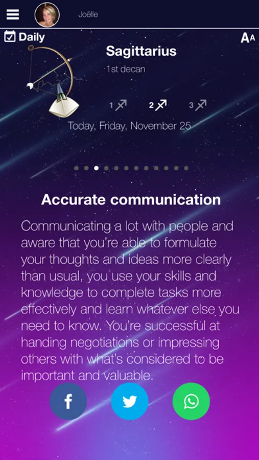 New design to enjoy your daily horoscope with all 3 decants and prepared by an astrologist expert with more than 25 years of experience.