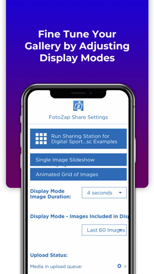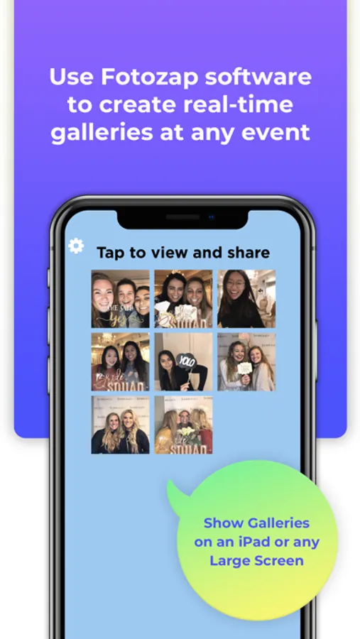 FotoZap Gallery is the ideal solution for displaying photos uploaded during any promotion or event. Individual photos are instantly presented as a Gallery of photos on any size screen, including a jumbotron. Displayed photos can be viewed in a variety of Gallery styles, with or without branding and advertising messages. You can display them on a large screen as a traditional gallery for the entire crowd to view, or display them on an iPad for each guest to view individually.